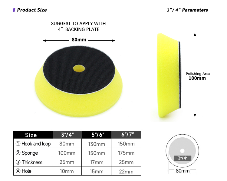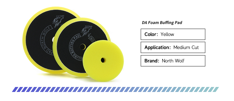North Wolf DA foam buffing pads feature a yellow 75 PPI sponge designed for medium cutting. With bevel edge design and a durable,heat-resistant hard backing, these pads stay firmly attached to dual action polishers without peeling off.They are also compatible with rotary polishers and GA polishers when used with a 3-inch backing plate.Recommended for use with cutting compound to remove light scratches, or with polishing compound to eliminate swirls depending on paint condition.Made of high tensile strength foam material, these pads are extremely durable.