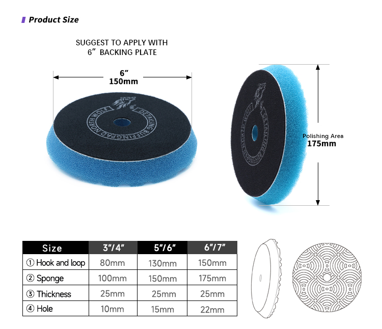 6 Inch Heavy Cut OEM Sponge Buffing & Polishing Pads for Automotive Paint Correction