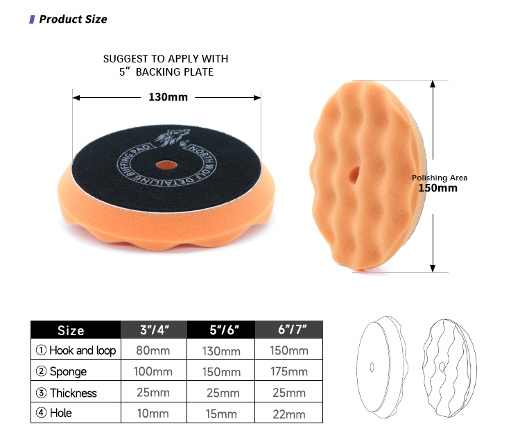 distributes polish and compounds evenly, minimizes pad grabbing, and effectively reduces heat during polishing. The reinforced hook-and-loop backing enhances durability and extends service life.