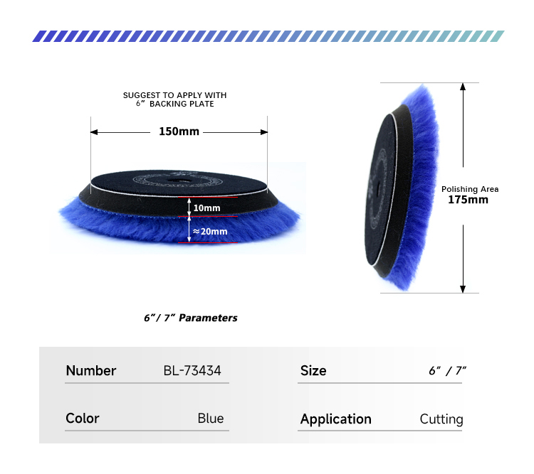 Blue-colored, made from 100% natural wool, ideal for one-step polishing.