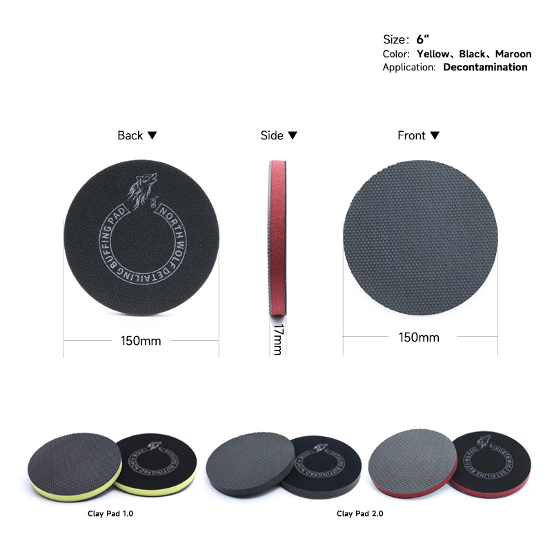North Wolf Detailing Clay Pad are made for car paint decontamination usage , one side hook and loop easy to attach on machine for fast cleaning .