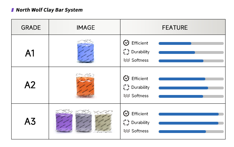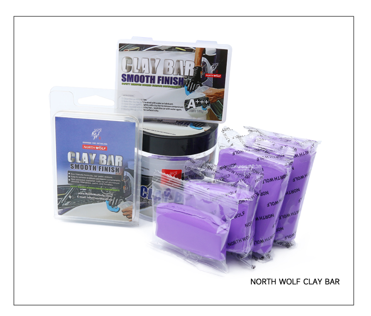 North Wolf Clay Bar made with synthetic clay which can remove stubborn stains on car paint quickly without damage due to its soft texture and natural stickness to make perfect preparation to wax or polish.