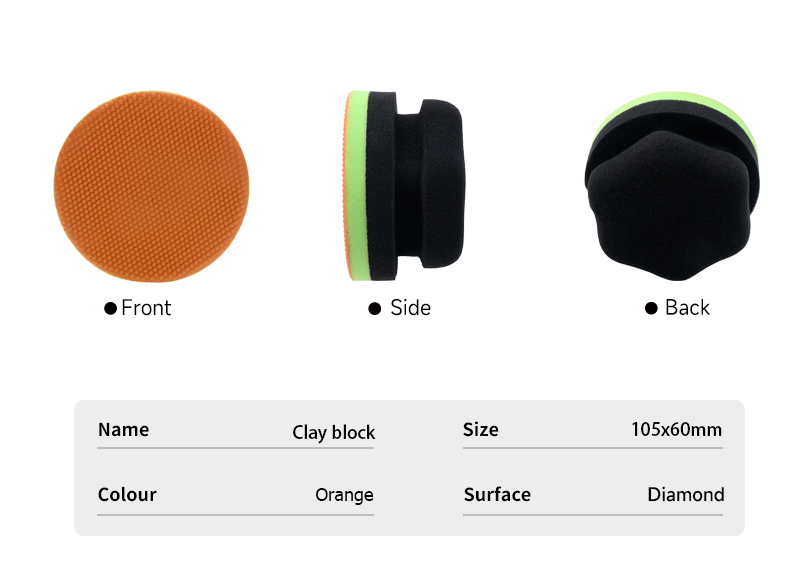 Manufactured with a high-tech rubber polymerized face, clay Sponge removes bonded contaminants in half the time it takes a traditional detailing clay bar.