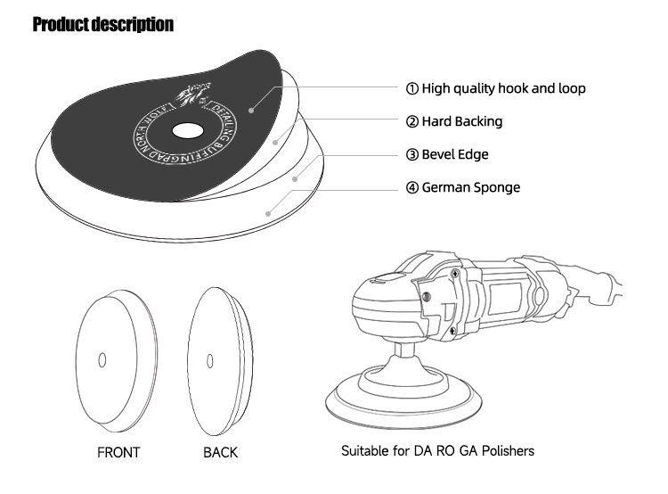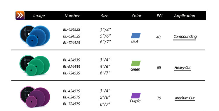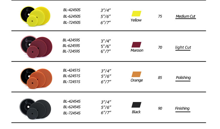 - Black finishing pad: Perfect for final finishing and waxing application.