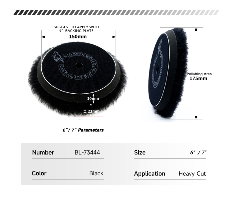 Introducing the North Wolf 100% Goat Wool Buffing Pad, engineered for extreme cutting power and professional-grade paint correction. Crafted from premium black goat wool, this pad delivers fast, aggressive material removal to eliminate deep scratches, severe oxidation, sanding marks, and swirls on automotive paint, marine gelcoat, and epoxy surfaces.