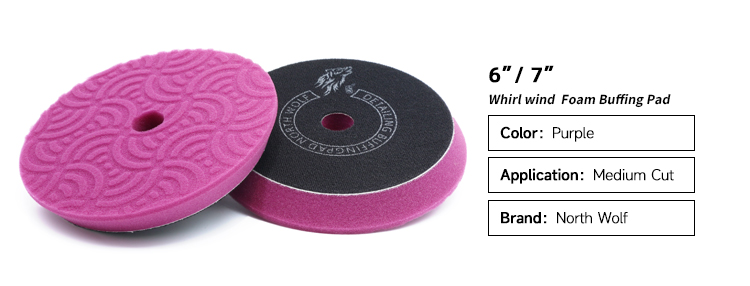 North Wolf purple DA foam buffing pad features a windmill design with medium-cut performance. Built with heat-resistant durable hard backing,