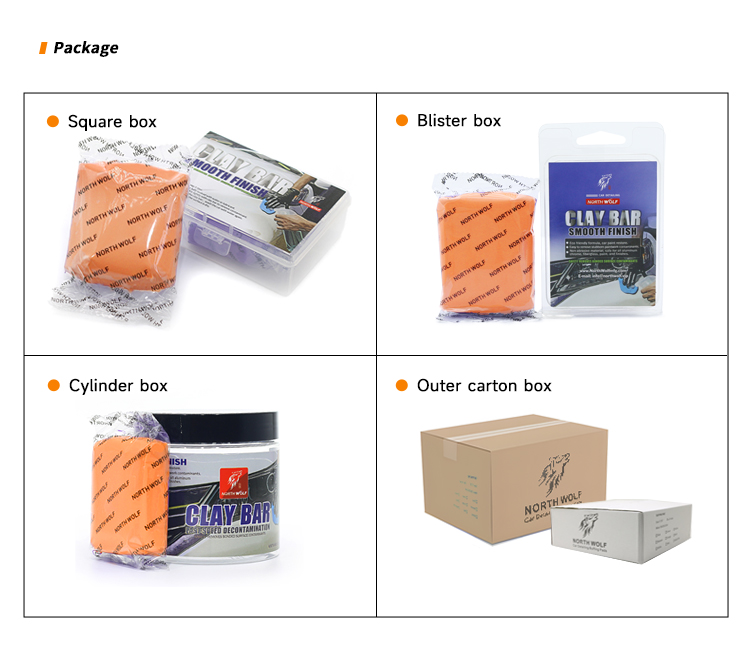 North Wolf Clay Bar is made of synthetic clay, which quickly removes stubborn contaminants from car paint without scratching, thanks to its soft texture and strong adhesion.